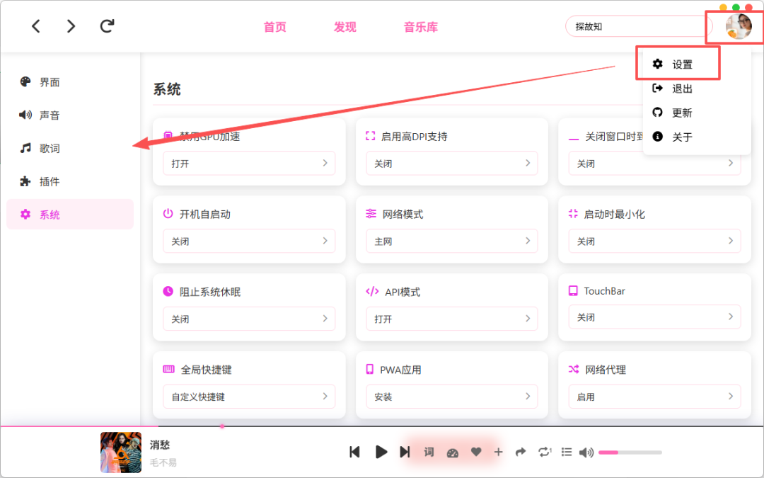 在设置里您可以根据自己的习惯进行更改。界面及音质