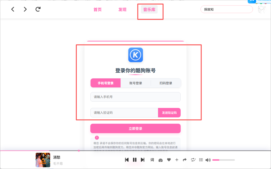 在音乐库里登录自己的酷狗账号,没有的就自己注册一个,但不要先登录这个,需要您先在酷狗官方客户端登录后,再来这里登录。