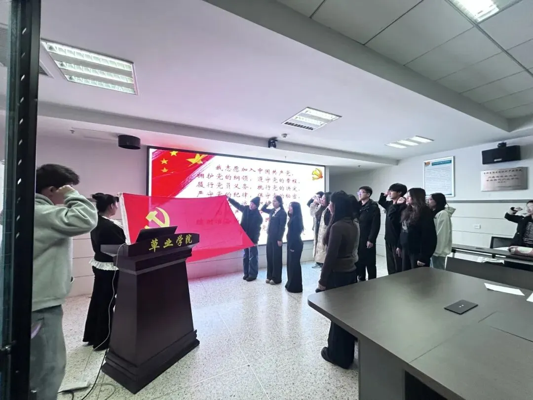 会议最后全体参会党员重温入党誓词,面对党旗宣誓。此次党员发展大会的顺利召开,为资源与环境学院研究生党支部注入了新鲜血液,进一步壮大了党员队伍。支部全体党员将继续在学校党委和学院党委的领导下,凝心聚力,担当作为,以实际行动践行共产党员的初心和使命。