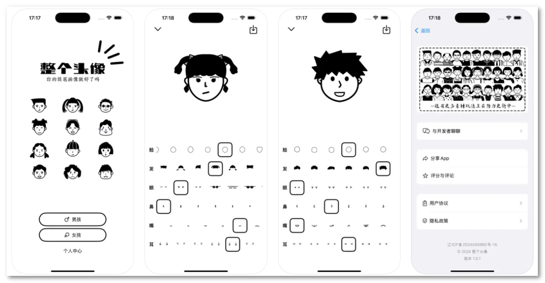整个头像是一款简笔画头像制作应用;软件支持 iPhone。