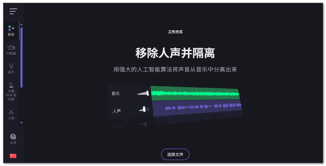 Vocalremover分离人声是一款在线音频处理工具,界面精美,功能丰富。
