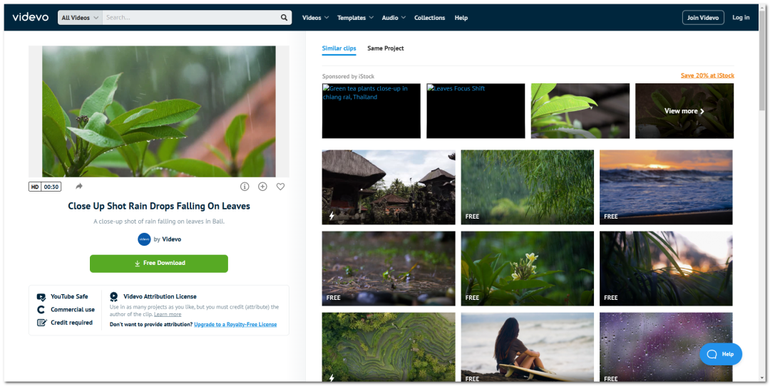 视频可以点击free download直接下载,会优先调用浏览器下载内容,下载下来的视频很高清,可以作为剪辑素材。右侧会推荐这个视频的相似素材,通过相似素材的推荐,可以给自己的创作增添更加多的灵感。