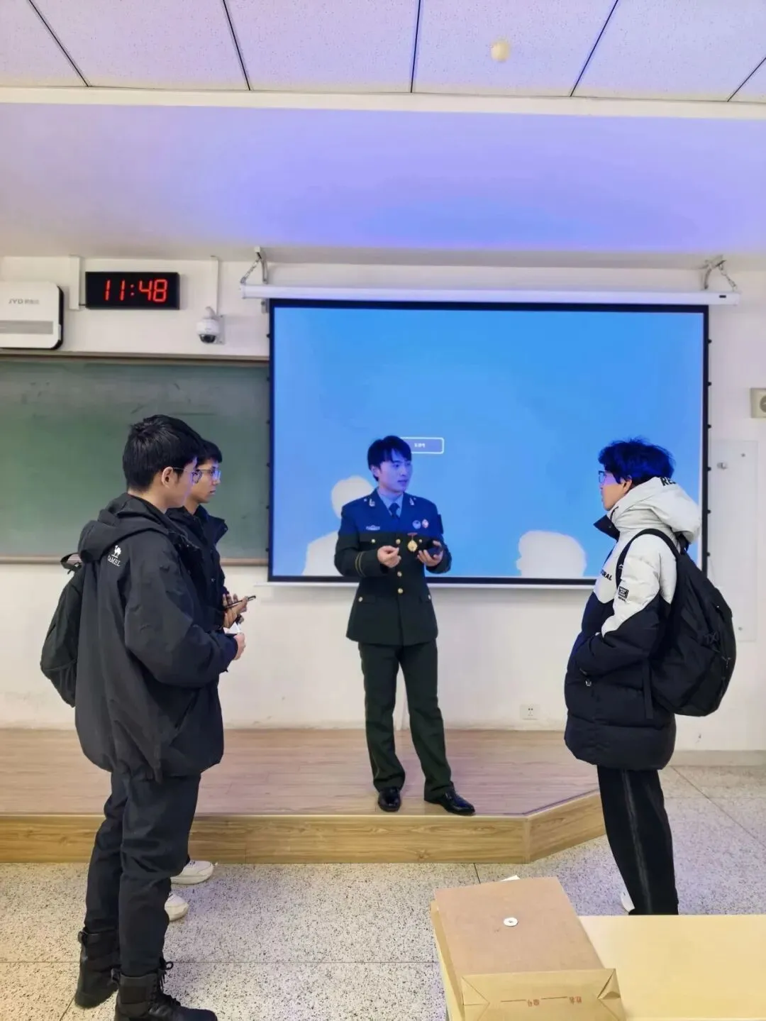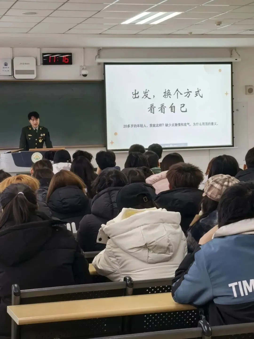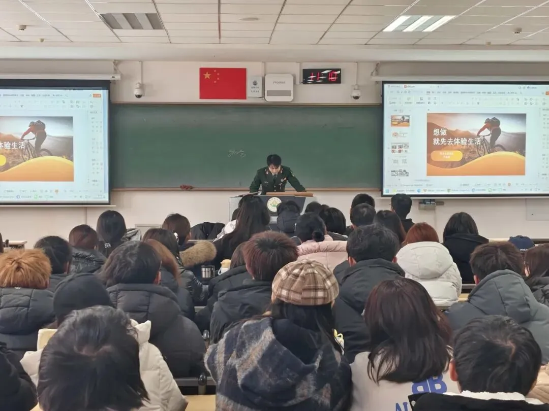 同时,他通过视频、图片与文字,生动展示大学实践及参军经历,重点强调:要跳出舒适区积累阅历,需具备思考力、主动力、执行力与持续力,且良好班级氛围对个人成长至关重要。