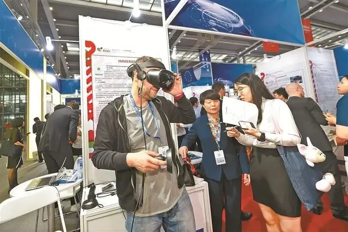 海外人才在第十七届中国国际人才交流大会上体验VR设备。(本报资料图片)