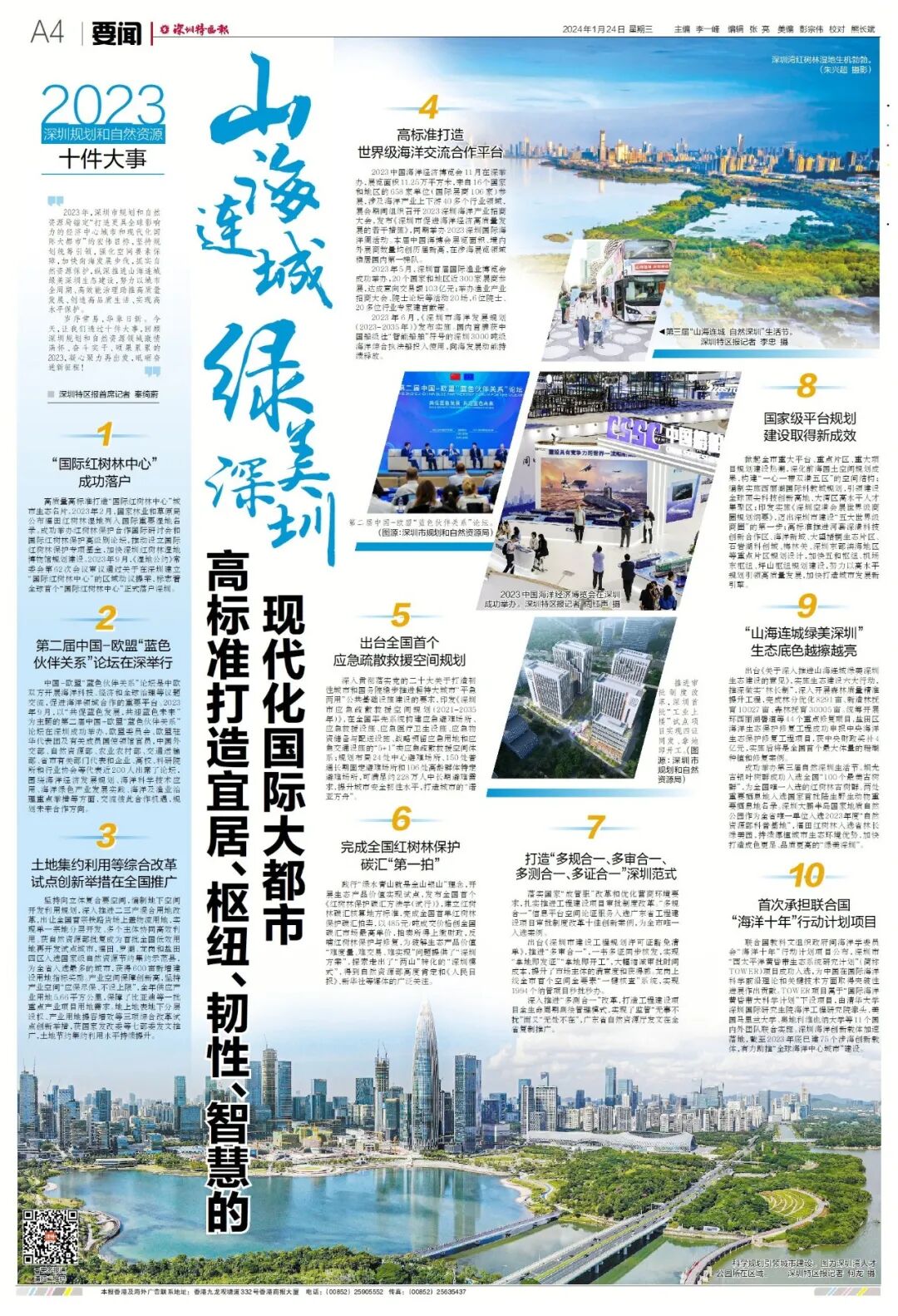 2023年,深圳市规划和自然资源局锚定“打造更具全球影响力的经济中心城市和现代化国际大都市”的宏伟目标,坚持规划统筹引领,强化空间要素保障,加快向海发展步伐,抓实自然资源保护,纵深推进山海连城绿美深圳生态建设,努力以城市全周期、高效能治理助推高质量发展、创造高品质生活、实现高水平保护。