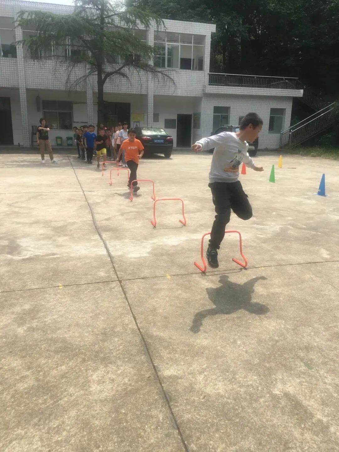 哨声一响,孩子们迅速站好,时隔四个月,他们还记得上学期的队形,李密老师给孩子们一个大大的赞。接着在李老师精心设计的小游戏中,孩子们体验着体育运动的快乐,在小组比赛中感受体育运动的魅力。