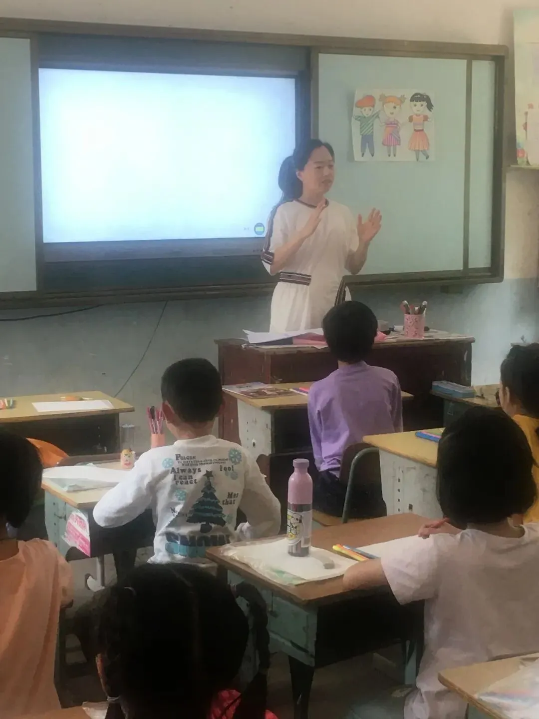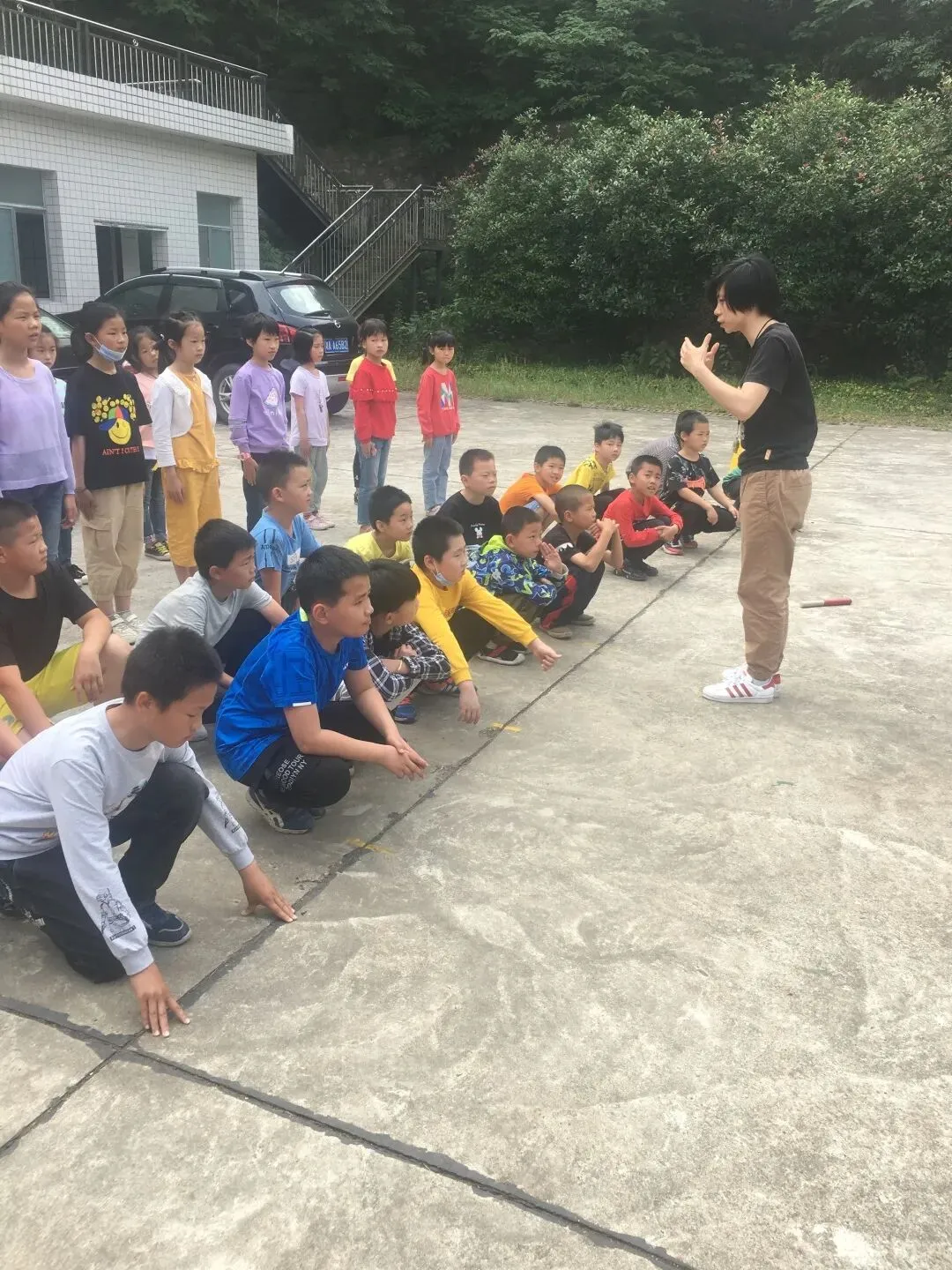 时隔四个月,再次走进湾塘小学,孩子们一声声亲切问候,让基地学校领导和东城小学走教团队倍感温暖。考虑到天气原因,基地学校副校长陈灿对本次课程顺序进行调整,分别为音乐、体育、美术。