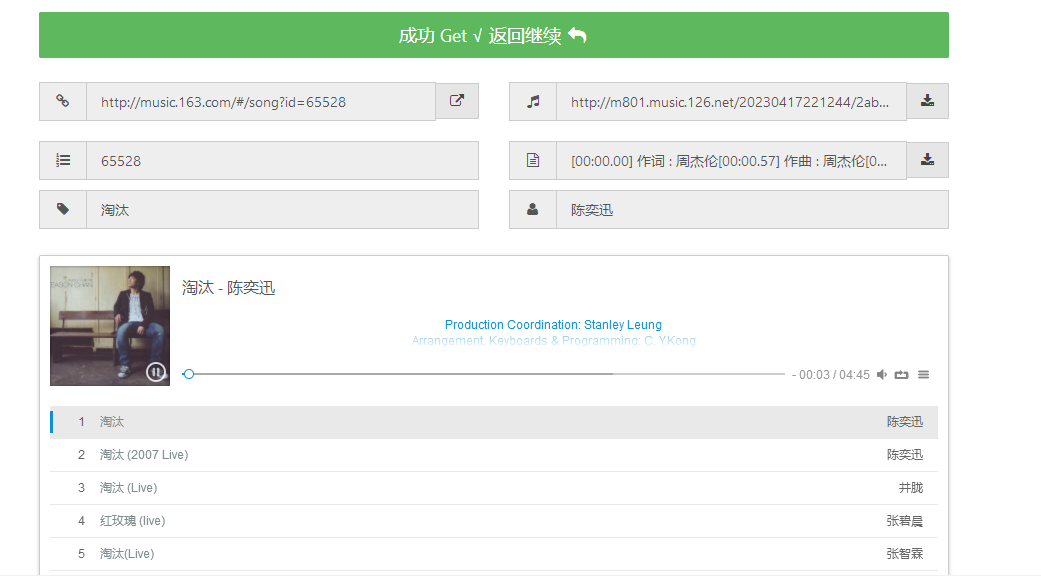 提供的每首歌曲都有详细的标签以及下载箭头,随便打开一首播放都非常好听,还能按照歌手名字搜索全部相关的音乐,非常值得大家当做日常听歌工具。