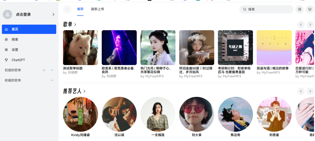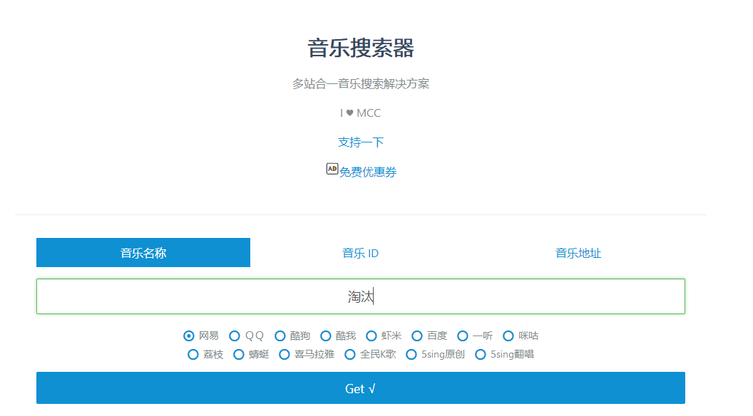 一个聚会类的音乐网站,可以在这里听到多个音乐平台上的歌曲。