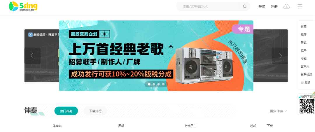 除了好听的音乐之外,还能找到非常多的免费伴奏音乐素材,每个音乐伴奏都支持免费下载,不需要登录就能直接下载。