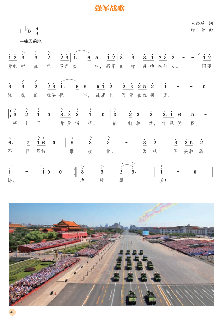军旅歌曲作为声乐体裁的一种,无论是在艺术性还是在功能性上都有着个性化的特点。我国军旅歌曲的创作始于19世纪末20世纪初,在不同的时期承担着不同的功能,为中国革命的发展和军队建设起到了不可磨灭的作用。进入新时期以来,随着军队的现代化建设和治军思想的引领,当代军旅歌曲在体现军人风貌、表达军人爱国主义精神以及丰富声乐体裁方面又有着突出的作用。