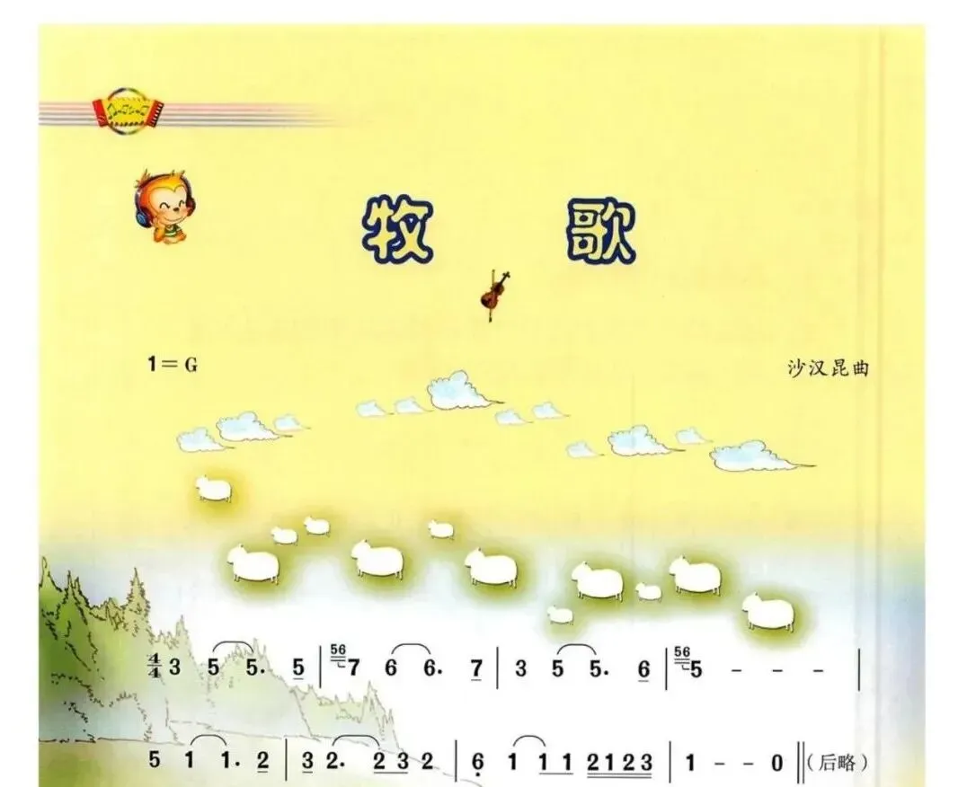 上滑音就是由较低的装饰音滑向本音而成。《小螺号》中运用了上滑音增添了调皮可爱,更具趣味性。