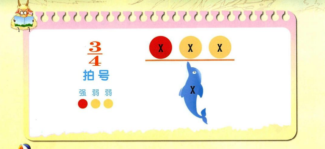 3/4拍是以四分音符为一拍,每小节3拍,强弱规律为:强、弱、弱。