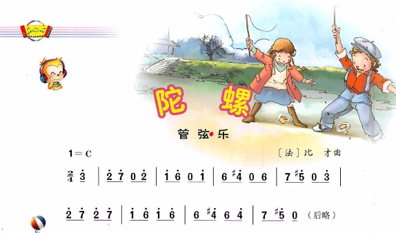 1871年法国作曲家比才创作了十二首四手联弹钢琴曲《儿童游戏》,后来其中的五首改编成管弦乐曲,组曲中的每一首都有标题,我们听到的是第三首《陀螺》,表现了孩子们在玩陀螺游戏的情景,乐曲通过快速流动的十六分音符描绘了陀螺的飞快转动。