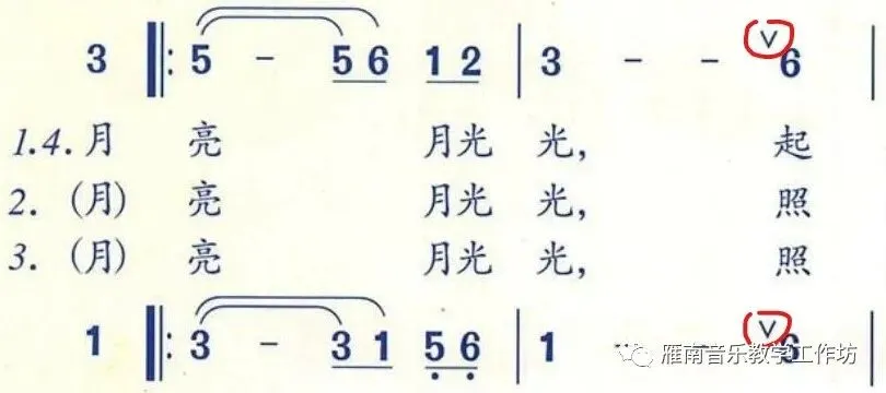 换气记号用∨来标记,记写在谱表的上方,在歌唱中表示要在此处换气。