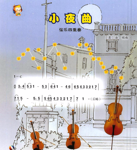 乐曲为海顿所作《F大调第十七弦乐四重奏》中的第二乐章。乐曲分为两个部分:首先由第一小提琴奏出呈下行的主题旋律,其他三个声部由第二小提琴、中提琴和大提琴用拨弦奏法奏出曼托林伴奏的效果;第二部分旋律是第一部分主题旋律的变化发展。这首小夜曲色彩明朗、节奏轻快、旋律优美,具有典雅质朴的情调。