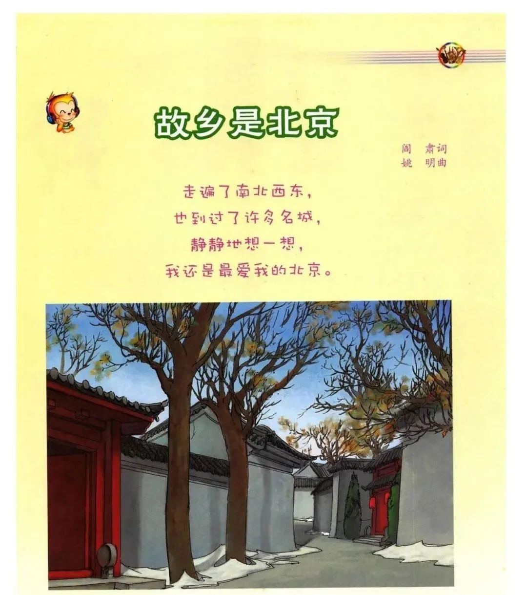 《故乡是北京》是一首京歌,旋律吸取了京剧和京韵大鼓的音乐素材,赋予了歌曲浓郁、鲜明的地方色彩,倾吐了生长于北京的人们对乡土怀恋的情绪。歌曲可分为三个部分。