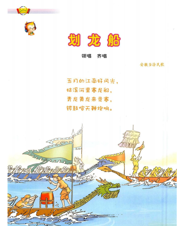 这是一首安徽民歌,生动表现了赛龙舟的热闹场面。歌曲采用一领众和的演唱形式,旋律刚劲有力,音乐节奏与划船动作节奏相吻合,具有粗犷豪迈的性格特征,表现了激昂奋发的风貌,属于民歌中的“号子”。