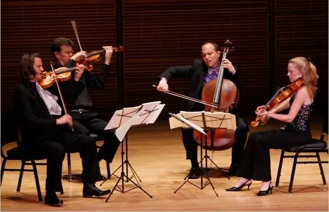 由第一小提琴、第二小提琴、中提琴、大提琴组成,是古典主义时期最重要的室内乐形式。它最初仅限于家庭、沙龙范围,是贵族雅士自娱自乐的音乐形式。