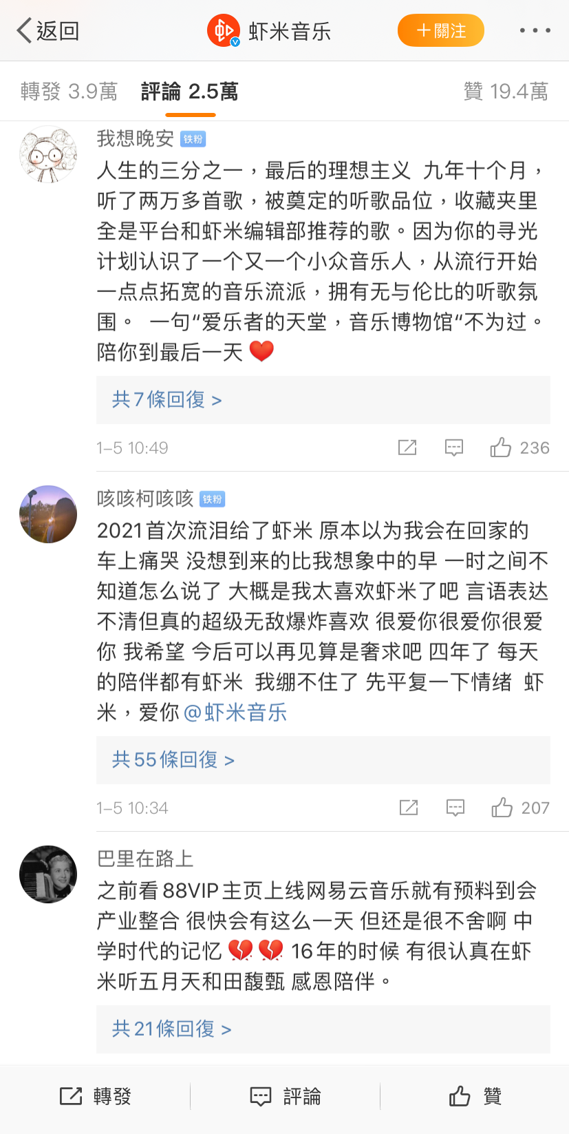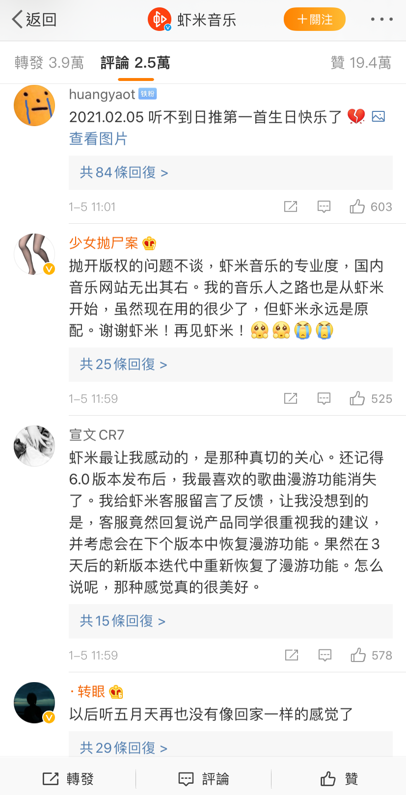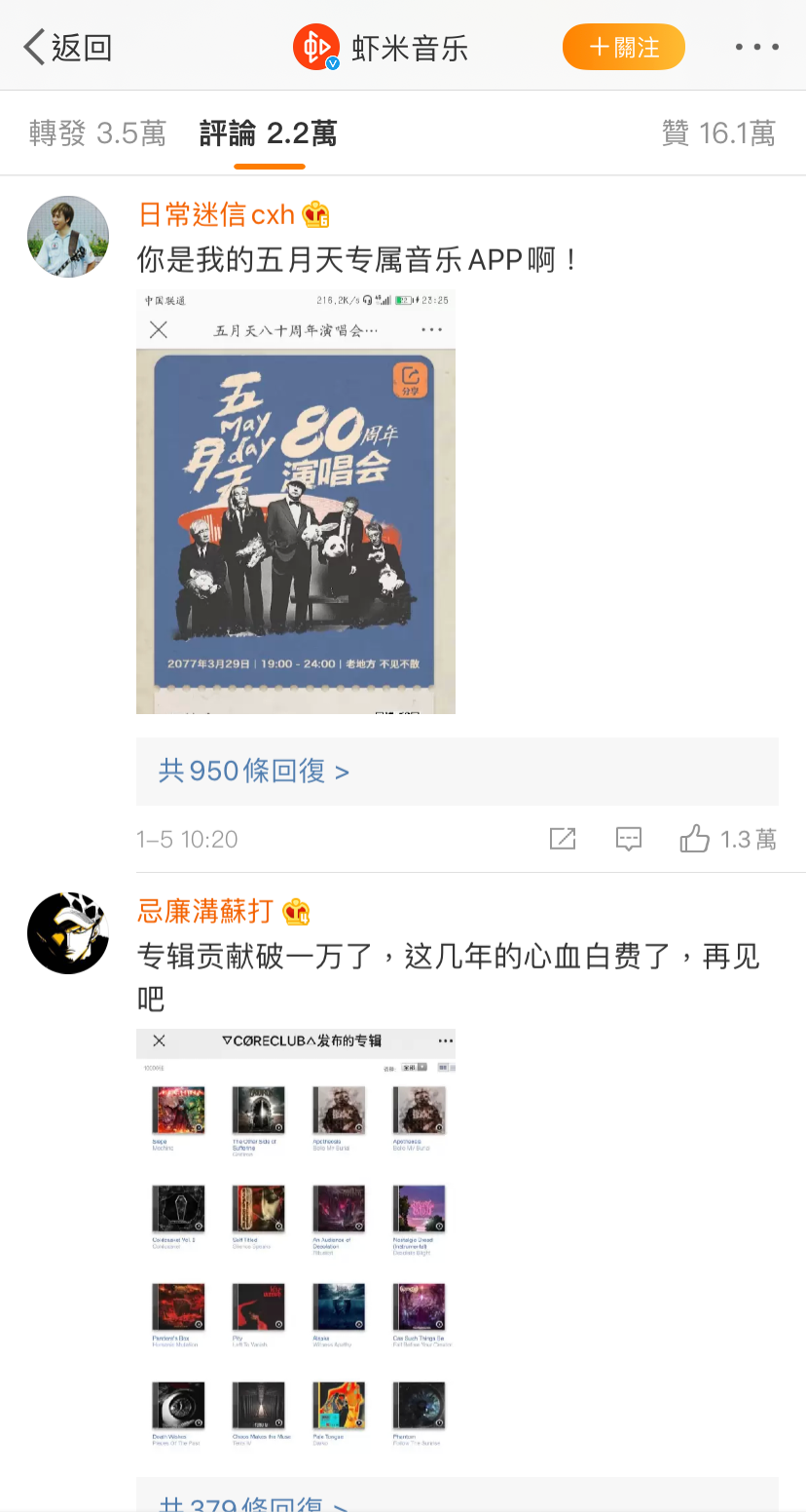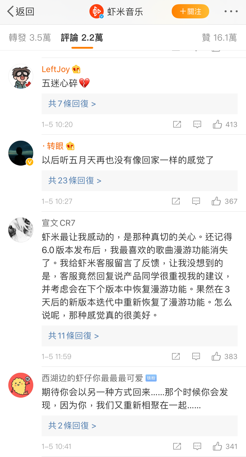 证明虾米“退出江湖”的影响力不小