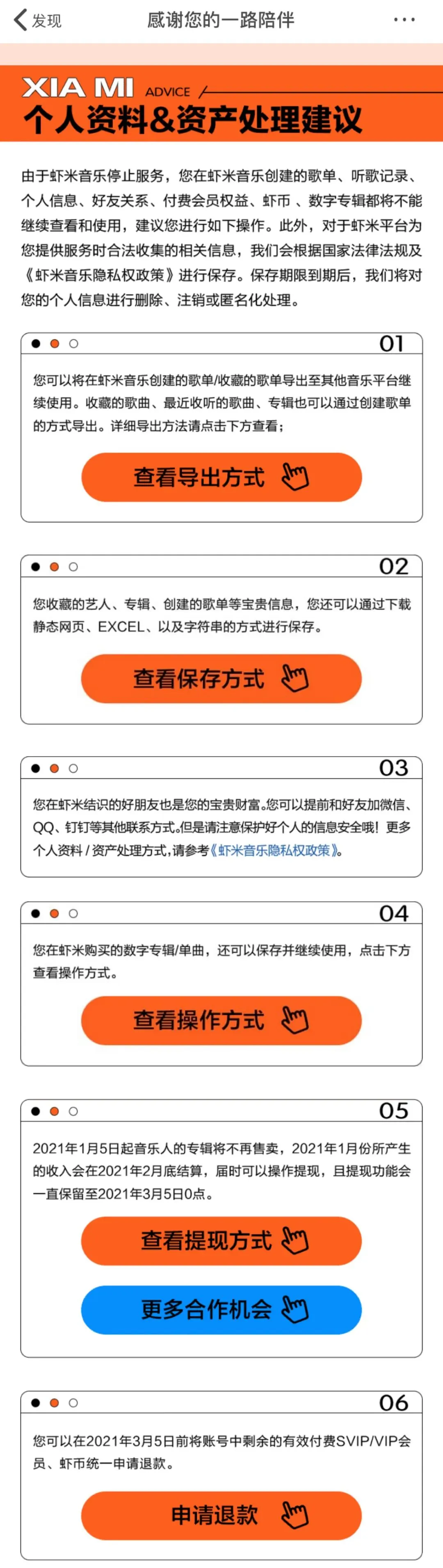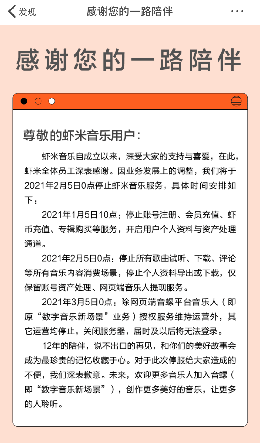 虾米音乐在平台上也发出公告