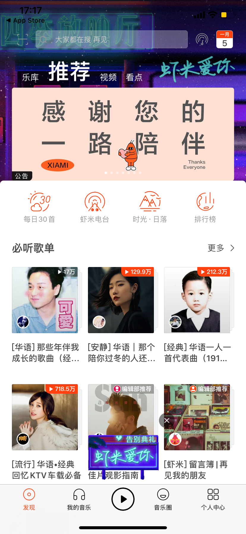 送给每一位支持虾米音乐的小伙伴
