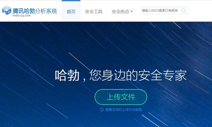 2.这里顺便提一下软件病毒检测情况,腾讯哈勃分析系统检测无病毒,检测报告MD5值为:48a53140a41cb3602fd4fde109d55c5c,将MD5值输入它的搜索框内,即可搜索已有的检测报告。