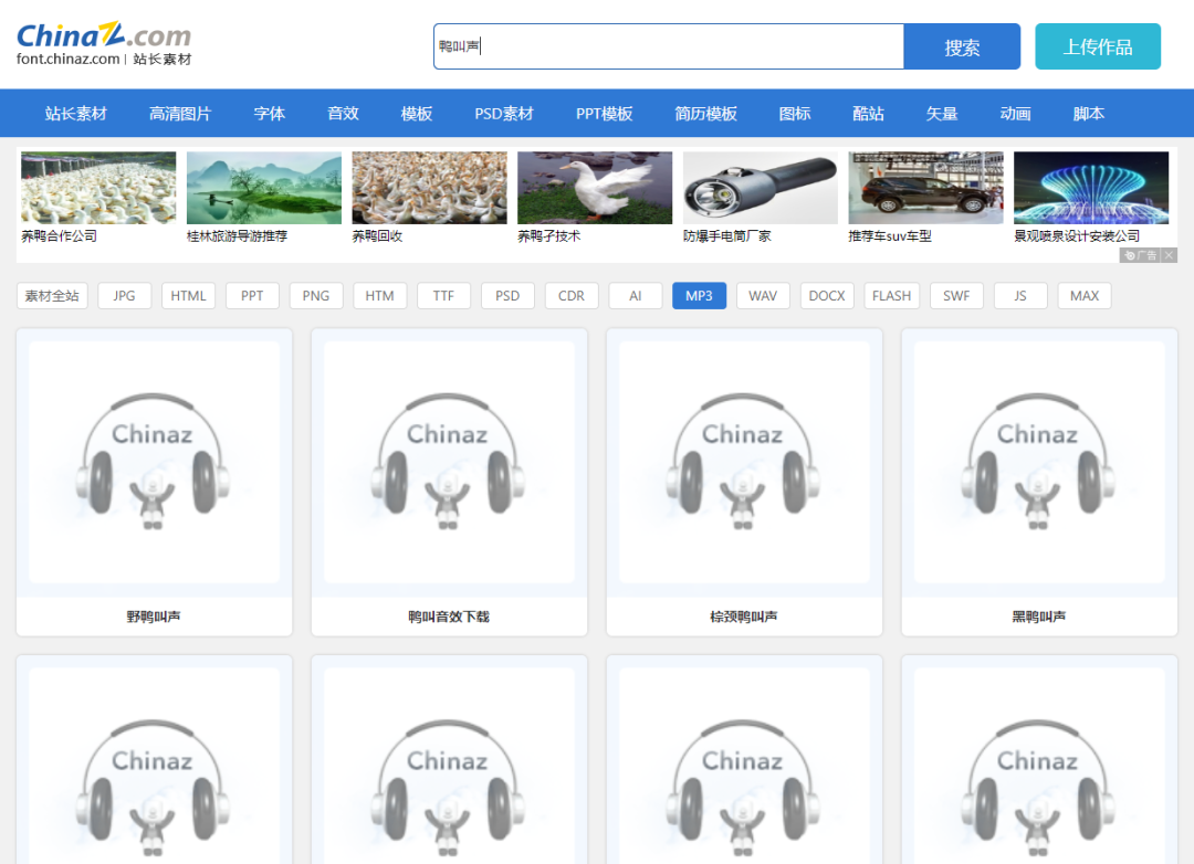 输入你需要的声音,例如:鸭叫声