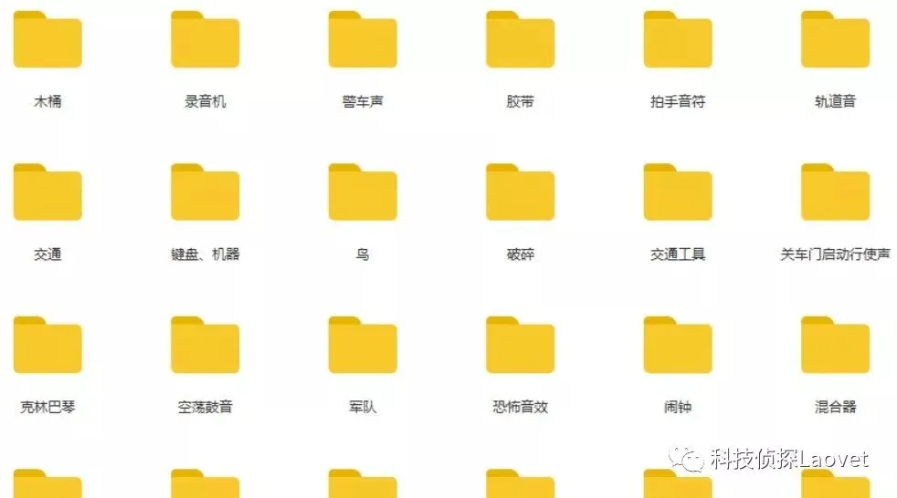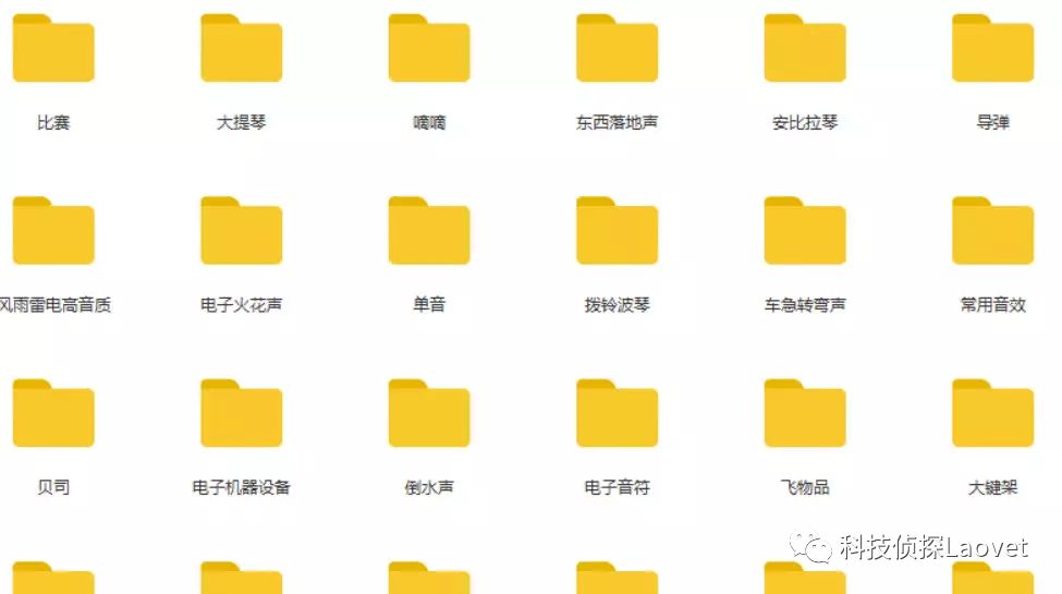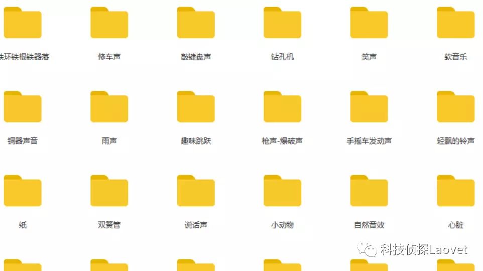 有需要的朋友只需要扫下方二维码关注公众号:科技侦探Laovet 并在后台发送{音效}即可免费获取3万种音效素材资源。