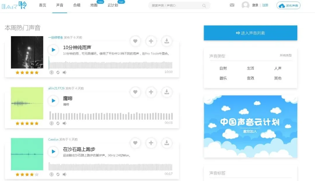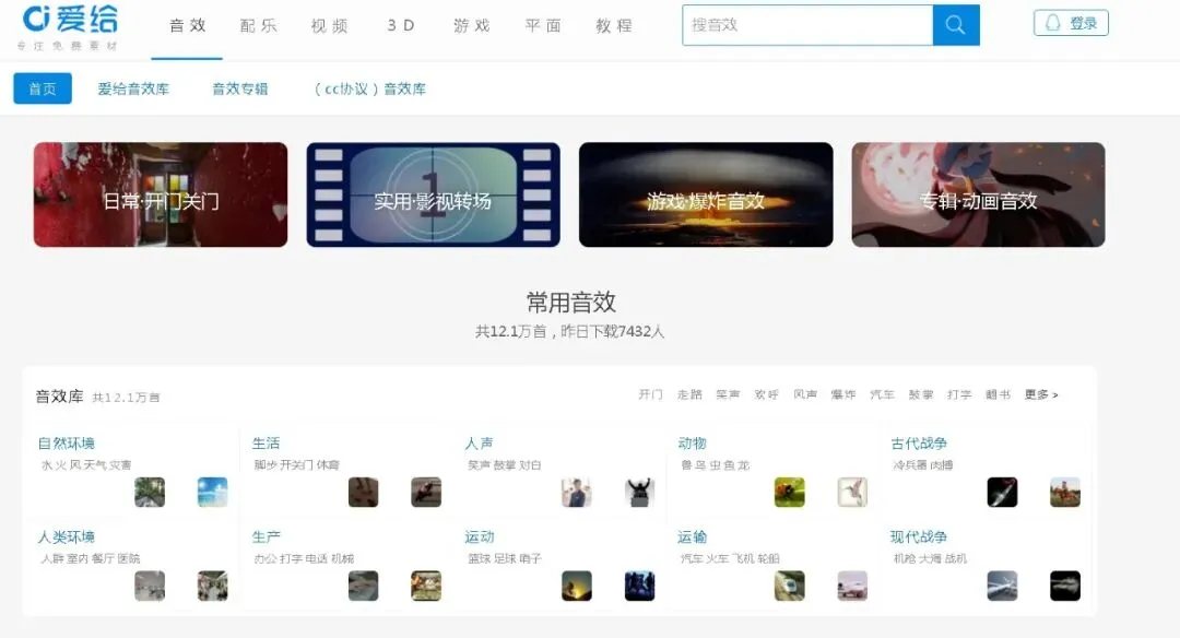 而且,就算访问上去也全都是外文,对于网站的使用还是有点门槛的。但是,这并不妨碍我日常做视频,因为还有很多其它的好用的音频网站与工具。http://www.aigei.com/sound/这是我最常用的音效网站,因为里面的音效资源不仅多,而且全都是免费的。