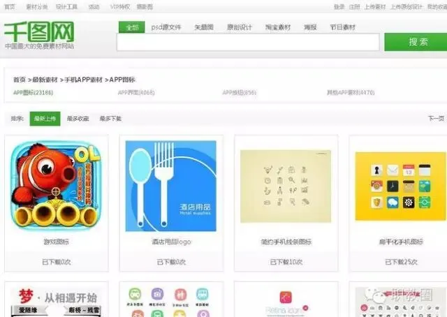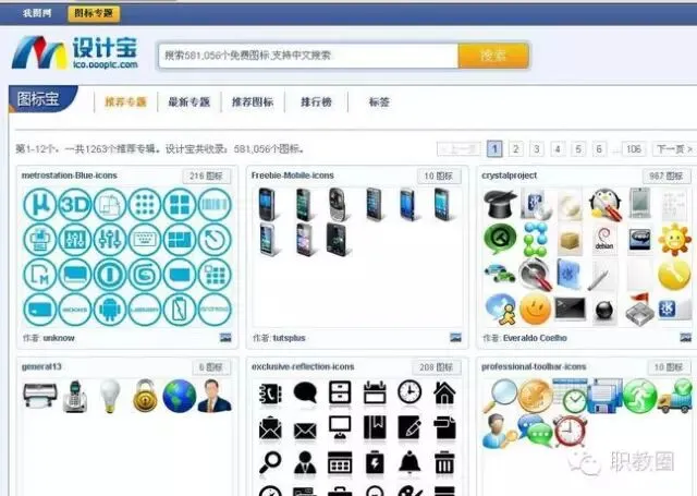虽然素材公社不是专门提供图标素材的网站,但它的图标素材种类非常多,而且大部分是系列化图标,一般我们可以从这里下载到一整套统一风格的图标。但值得提醒的是,大部分图标素材为多个图标规律排布在一个文件中,需要我们进行裁剪修改保存后,才能使用。