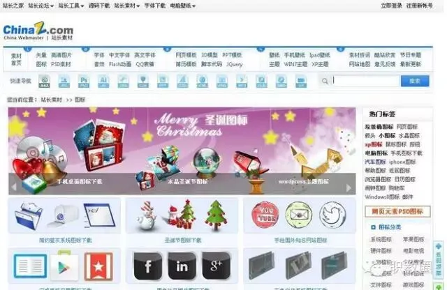 站长素材同样是一个提供多种多媒体素材的网站。其中的图标板块便是本期所提的图标素材收集。这个网站提供的图标文件也多为png格式。