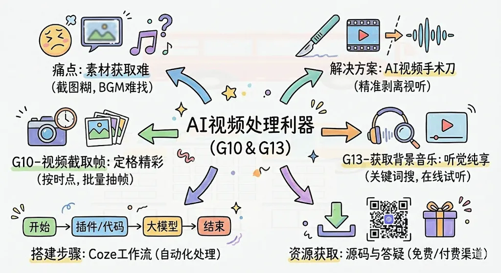 🅱️ 懒人党(¥9.9 / 杯奶茶钱)扫码添加作者微信 (hwdemtv),回复 "Day15" 获取本期资源:📦 G10_VideoFrame.json📦 G13_BGMExtractor.json🚀 优先答疑