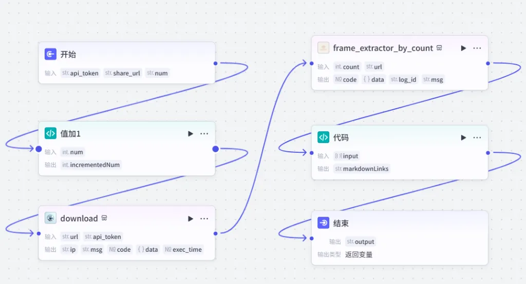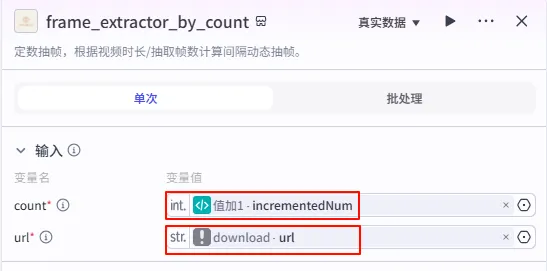 frame_extractor_by_count - data.chunks(抽帧结果列表)。 - markdownLinks: 输出变量名,类型选择 String。