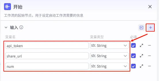 1. 设置开始节点我们需要用户输入分享链接。