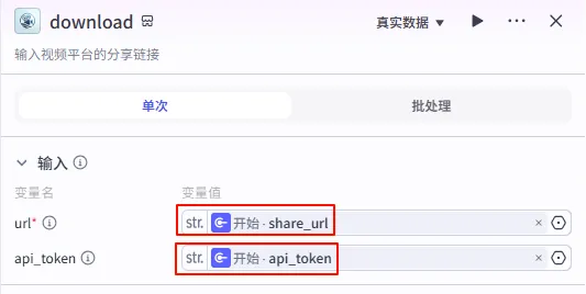- url: 引用 download - data.url (从上一步获取的真实视频地址)。