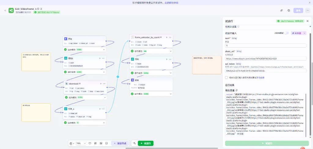 这个工作流利用 Coze 的视频处理能力,可以指定时间点截取图片。