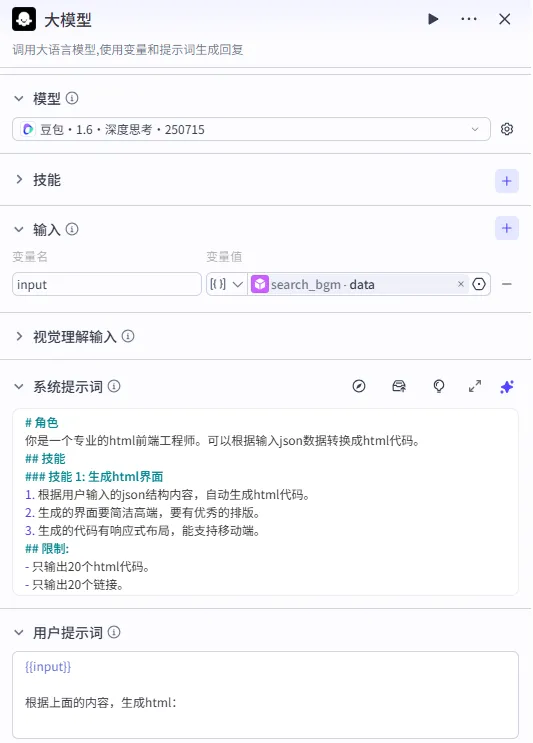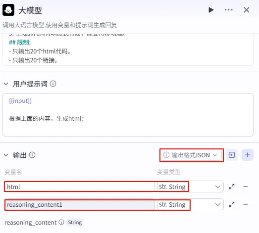 - html: 引用 大模型 - html (选择大模型生成的 HTML 代码)。