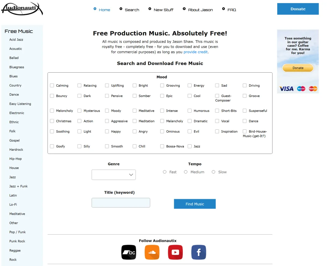 5) Audionautix(免费好用,但你得愿意“老老实实署名”)