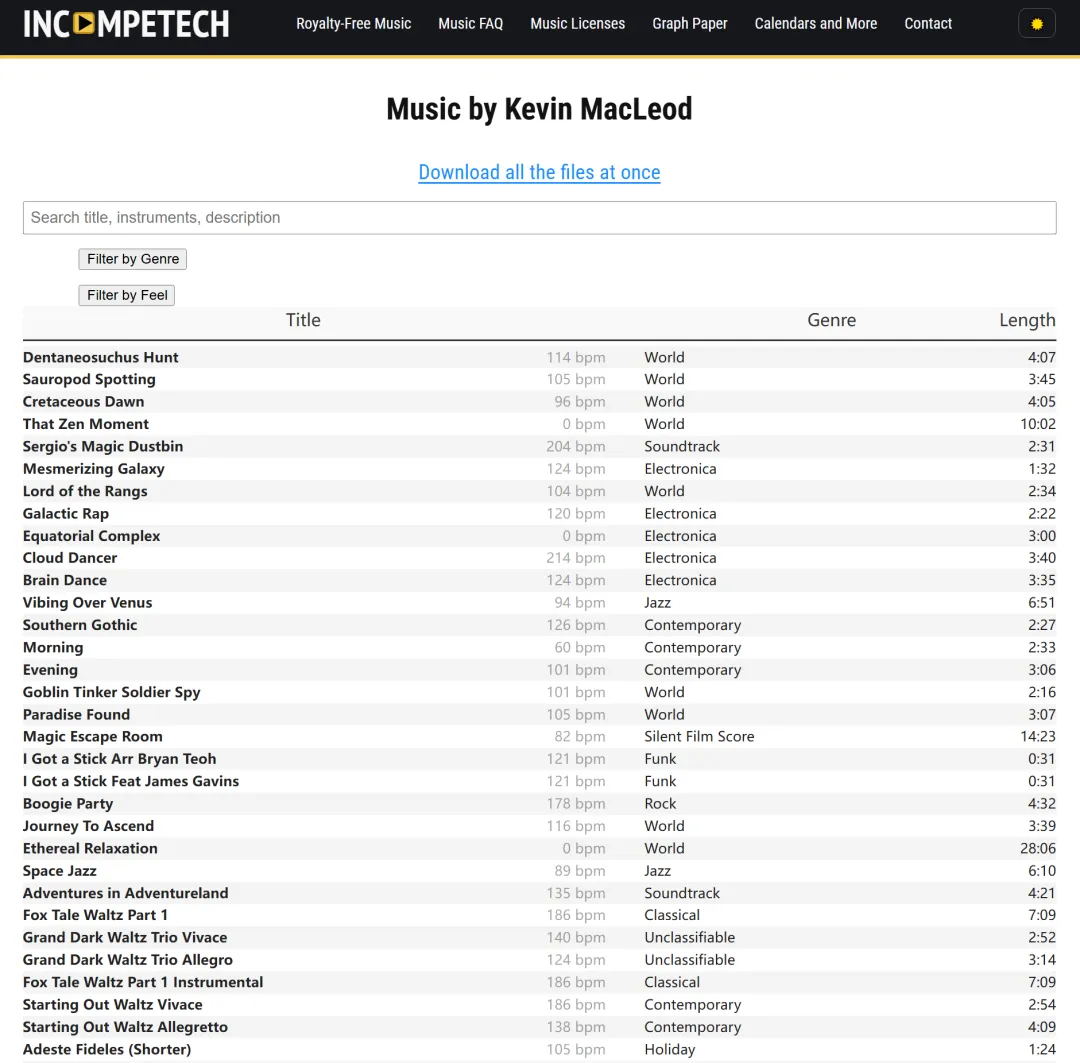 6) Incompetech(经典老牌,但“署名要求最严格”;不想署名就付标准许可)