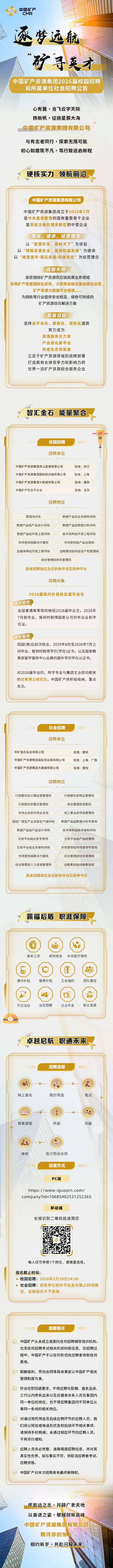 >中国矿产资源集团2026届校园招聘和所属单位社会招聘公告
