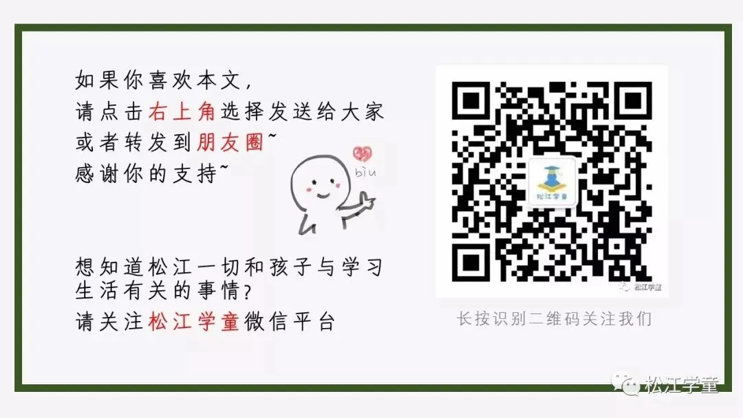 配上【松江学童免费资源下载】加上能表达你想要资源的热情文案,分享本文到朋友圈;不方便分享到朋友圈的,请分享到50人以上的学习群;