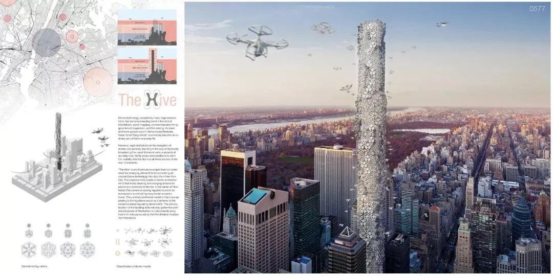 第二名获奖作品:The Hive: Drone Skyscraper