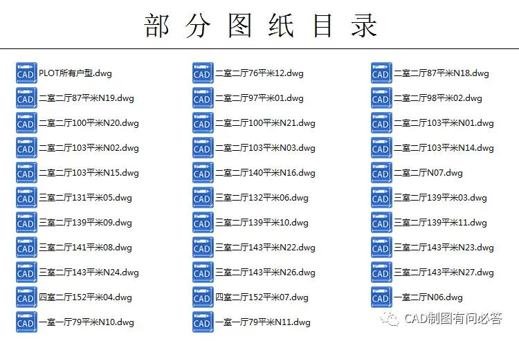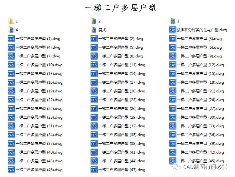 本期素材为住宅户型CAD图纸,包含了各种CAD建筑户型平面图,多层、高层、一梯两户、一梯三户、一梯四户等,可用于CAD房屋户型设计参考。