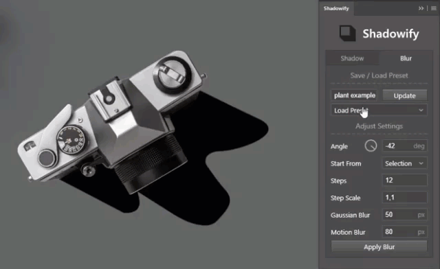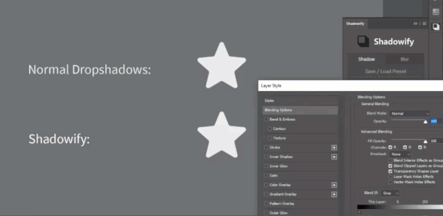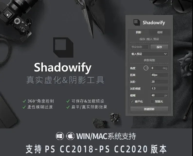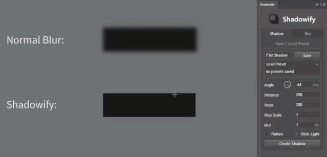 一键阴影神器(Shadowify)可修改的阴影方向及步幅、模糊值等。仅需一键即可创建出渲染级的软阴影效果。