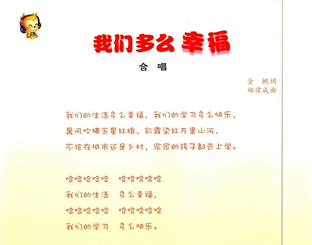 这是一首童声合唱歌曲,3/4拍,曲调活泼欢快,描绘了儿童的幸福生活,表达了他们的远大理想。歌曲由主歌和副歌两个部分组成:主歌旋律多跳进,“X X —”节奏多次出现,增强了弱拍上的力度,给人以爽朗明快的感觉;副歌旋律以级进为主,优美流畅,在欢笑声中表现了孩子们幸福、激动的心情。