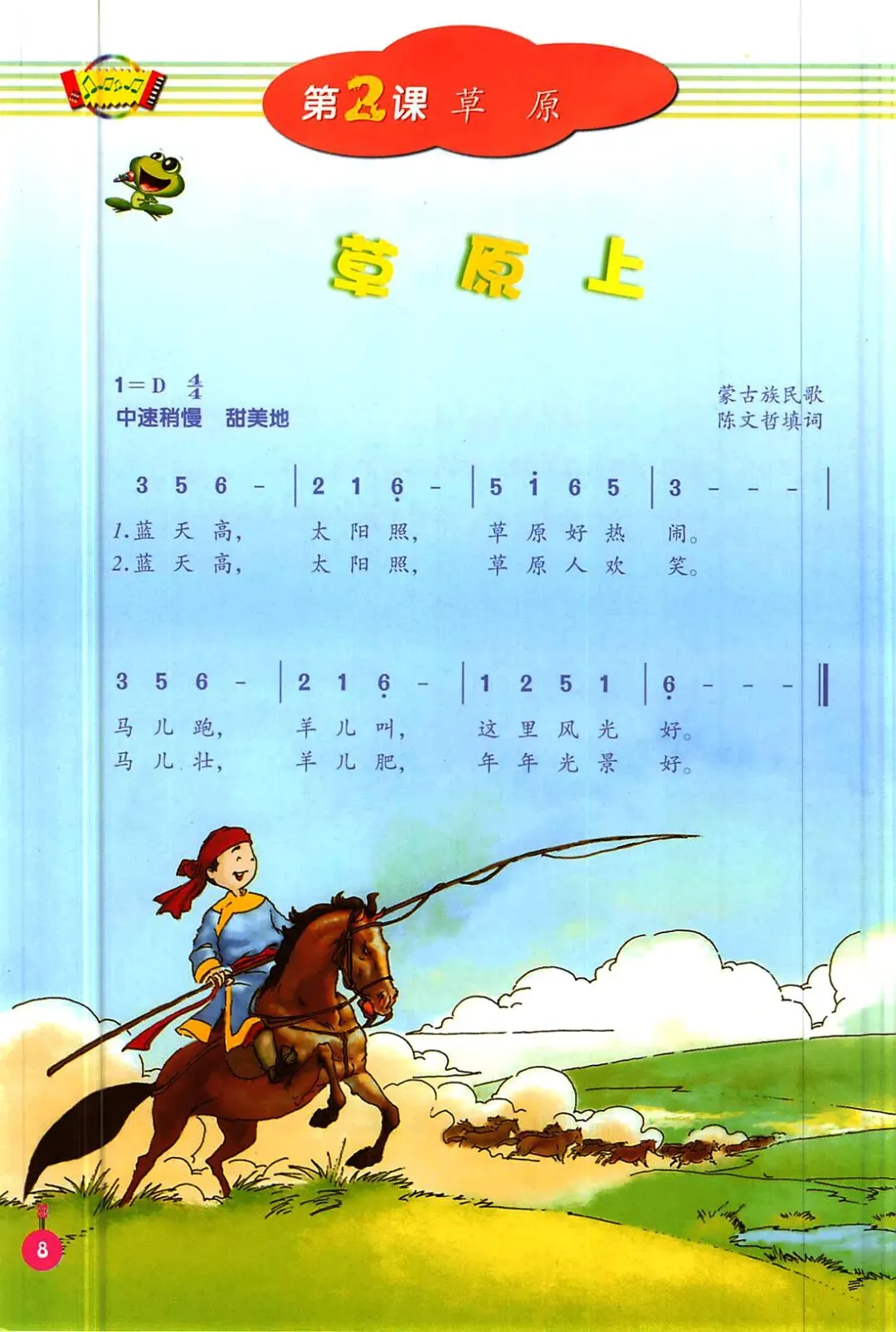 这是一首以蒙古族民歌音调为素材创作的儿童歌曲。歌曲为2/4拍,五声羽调式,为扩充了的一段体结构。歌曲以明快的旋律、跳动的节奏、具有舞蹈性的律动感,表现了草原小牧民放牧时的喜悦心情。