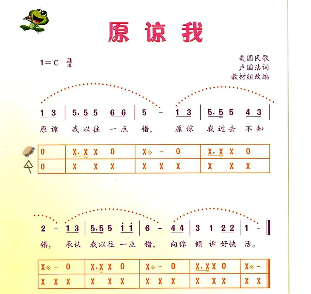 这是一首3/4拍的美国儿童歌曲,曲调短小精悍,歌词简练,明快的旋律表达了一个孩子对以往的过错,勇于向朋友倾诉,求得原谅的真切心情。歌曲由四个乐句构成一段体结构,每个乐句都以弱起进入。