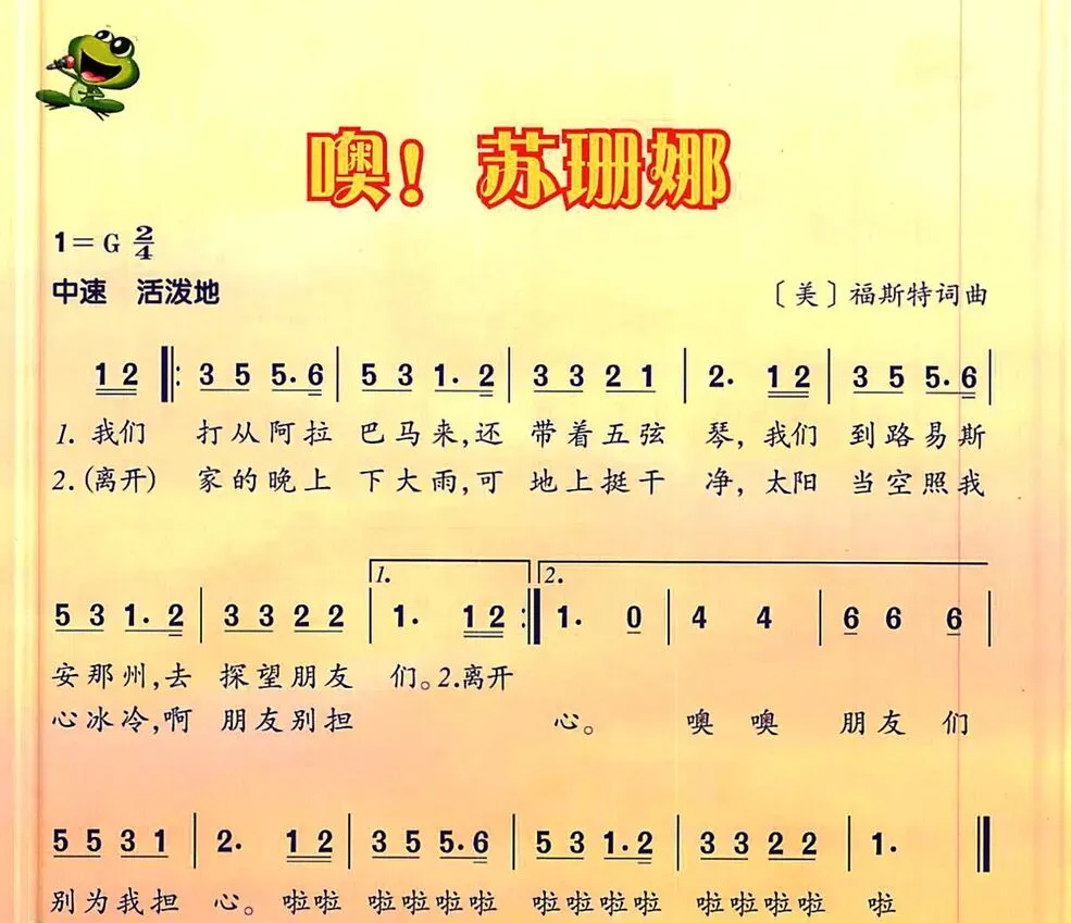 这首歌曲为2/4拍,是美国作曲家福斯特作品中深受音乐爱好者喜爱、流传最广的一首。曲调素材精练,易唱,易记,有着浓厚的生活气息,歌曲不仅表现了对朋友真诚的情意,也是对生活中美好事物追求的一种向往。全曲六个乐句,其中三个乐句是完全相同的,另两个乐句句尾稍作变化,中间部分有一个对比乐句。