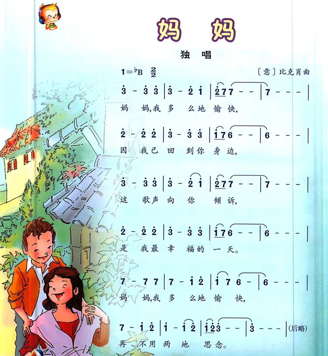 这是意大利影片《妈妈》的插曲,由B. 凯鲁比尼词,切•安•比克肖曲,薛范译配。这首艺术性较高的独唱歌曲,带有浓郁的那不勒斯风格,是对伟大母爱的颂歌。